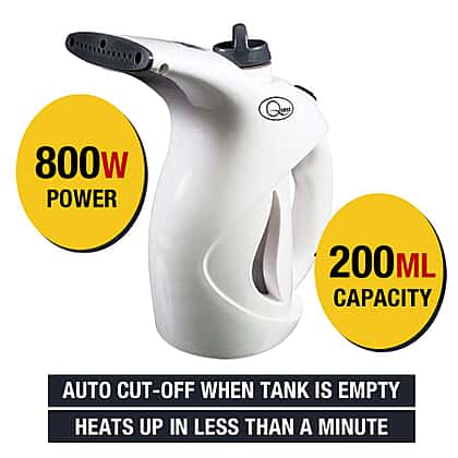Quest Portable Garment Steamer Includes Lint and Fabric Brush, 800 Watt, in White Colour