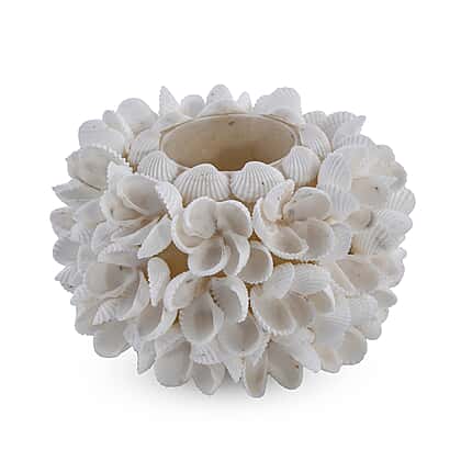 Bali Collection White Seashell Candle Holder in Frangipani Flower Pattern Size 10x9 Cm