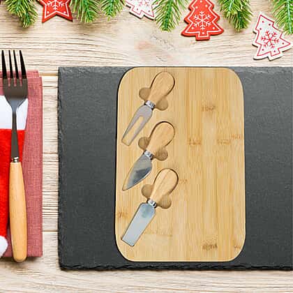 Bamboo Cheese Board with 3 Knives