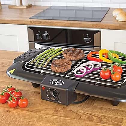 Savour the joy of barbecuing all year round with the Quest electric BBQ grill, boasting a robust 2000W power for efficient cooking. Ideal for those chilly or rainy days, or if outdoor space is limited, this grill brings the BBQ experience into your kitchen. It features a unique water-filled drip tray to minimise odours and smoke, making indoor grilling a breeze. The thermostatic control promises perfectly cooked meals, while the chrome-plated grill ensures effortless cleaning post-dining.