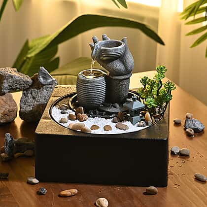 Immerse yourself in tranquillity with the Buddha Water Fountain, illuminated by soothing LED lights. This fountain combines the serene image of Buddha with the gentle sound of flowing water, creating a peaceful atmosphere in any setting. The LED lights add a warm, inviting glow, making it a perfect centrepiece for relaxation or meditation spaces. Easy to set up and maintain, it's a beautiful addition to your home or office, offering a touch of serenity and elegance.