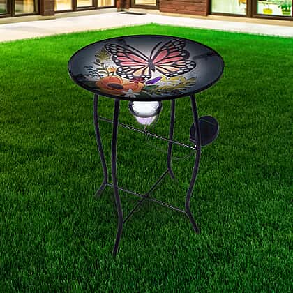 Butterfly Pattern Garden Table with Solar Light in Multi (Size 30.5x30.5x48cm)