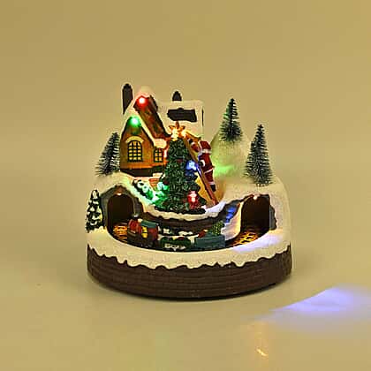 Enjoy festive cheer with the Christmas Village House & Moving Train Theme. This enchanting ornament comes to life with LED lights and merry music, capturing the season's essence. Watch the train chug through the quaint village, spreading joy with its luminous journey. Perfect as a centrepiece or a magical addition to your holiday decor, it brings the wonder of a Christmas market into your home.