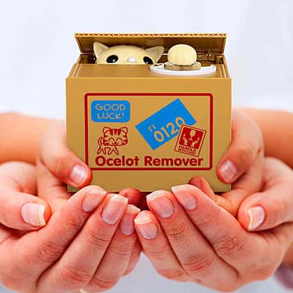Coin Stealing Cat Money Box (Size 12x10x9cm) - 2xAA Batteries Not Included