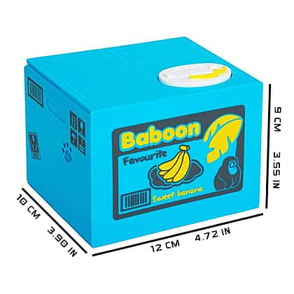 Coin Stealing Monkey Money Box (Size 12x10x9cm) - 2xAA Batteries not included