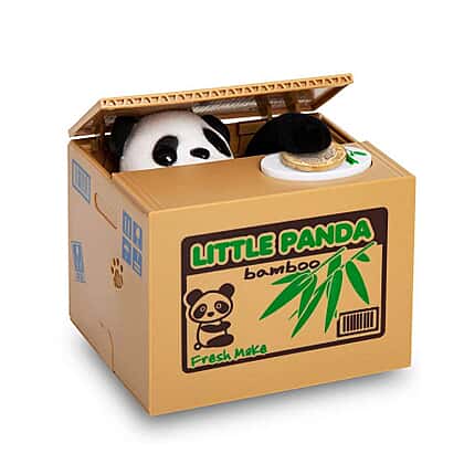Coin Stealing Panda Money Box (Size 12x10x9cm) - 2xAA Batteries Not Included