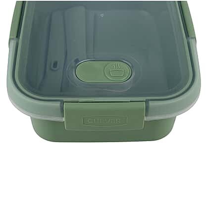 Stay prepared for meals on the go with the Curver Smart 1.0L Lunch Kit. Designed with two compartments and a secure clip-lock lid, it keeps your food fresh and sealed against spills. Made from BPA-free recycled plastic, it includes a reusable fork, knife, and spoon tucked neatly inside. The steam release valve allows safe microwave reheating, while its stackable build fits easily in the fridge or cupboard. Perfect for lunches at work, storing leftovers, or days out. With its transparent lid and olive green base, this lunch kit is practical (20x7x15cm), reusable, and made with eco-conscious design in mind.
