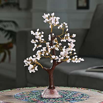 Decorative Handmade Rose Quartz Gemstone Tree with Wooden Base (Size 23x5.5cm) - Pink
