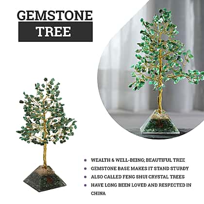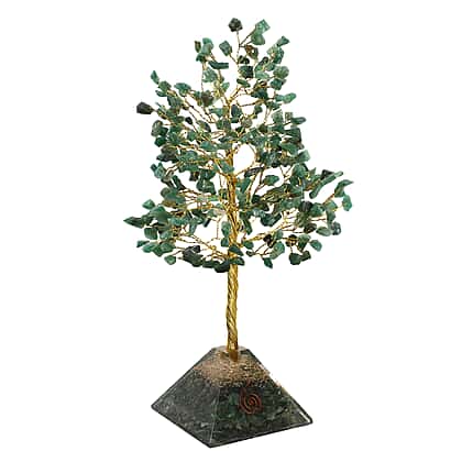 Green Aventurine Handmade Gemstone Tree of Life Table Decor with Orgone Pyramid Base