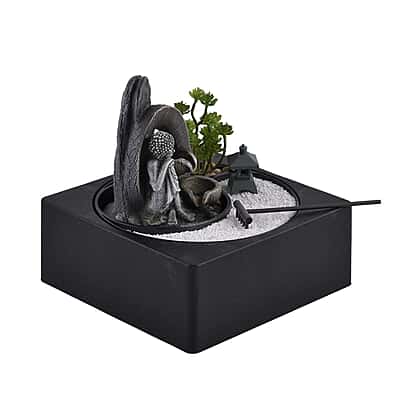 DIY - Cascading Buddha Fountain with LED Lights and USB Plug (Size 23x23x22 cm) - Grey