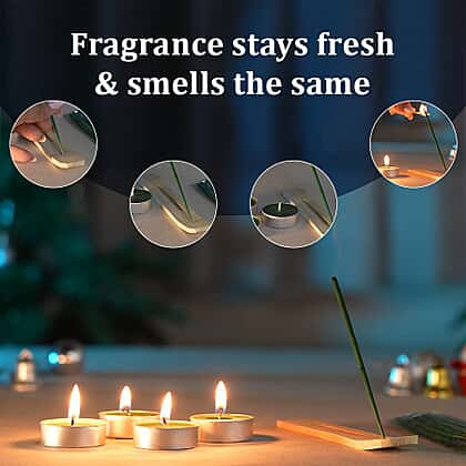 Give a berry-merry touch to your living space with this exotic fragrance incense gift set. This set comes with 20 incence stick which is filled with the scent of sweet berries and comes with 4 T-light sceneted candles to add more soothing vibe to your personal space or office. It has a wooden incence holder designed to hold the sticks perfectly straight and fits all standard incense sticks catching the ash as it falls. Whether you use it in your living room, bedroom, study, or office, our incense sticks and t-light candles will perk up your favorite fragrance as it releases a captivating aroma in the air.