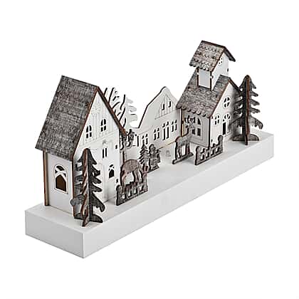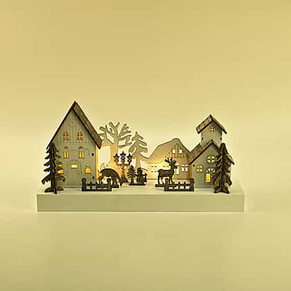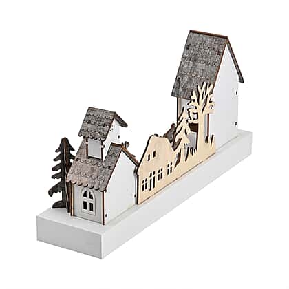 Exquisite Plywood Christmas Tree - House With 4 Warm LED Light(Battery Operated, 2AA Exclud.)
