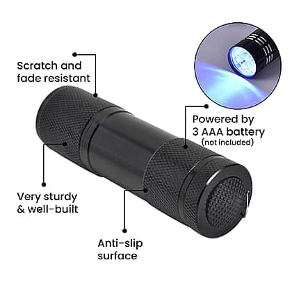 This high-intensity flashlight will illuminate the darkest zones and make your vision clearer. Powered by 3 AAA batteries, this flashlight has a scratch-proof and slip-resistant grip. Equipped with a strap for better handling, this high-intensity torch is ideal for camping, fishing or climbing at night. The high-intensity LED light help you check the authenticity of bank notes, shines yooperlite rock and can be easily carried to places due to the compact design.