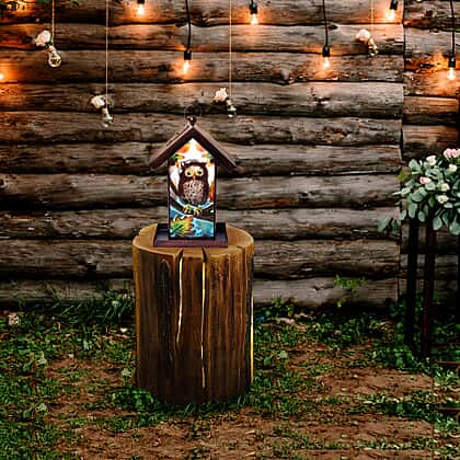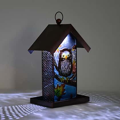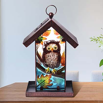 Garden Theme Hand Painted Solar Owl Pattern Lantern Bird Feeder (Size 18x14x33cm) - Brown and Multi