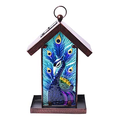 Garden Theme Handmade Solar Lantern Bird Feeder, Outside Hanging Birdhouse, Garden Lantern, Bird Feeder- Peacock