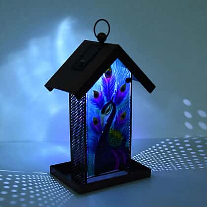 Garden Theme Hand Painted Solar Peacock Pattern Lantern Bird Feeder (Size 18x14x33cm) - Blue and Multi