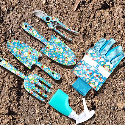 Gardening Tool Set in Gift Box (Includes Shovel, Fork, Pruning Shears, Pair of Protective Gloves & Watering Spray Bottle)
