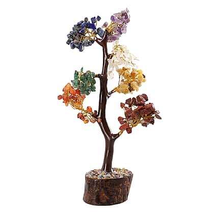 Gem Treasures - Decorative Handmade Multi 7 Chakra Gemstone Tree with Wooden Base, Size (23x5 Cm)