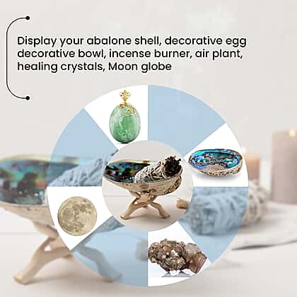 An artisanal showpiece, this wooden tripod stand is handcrafted from natural wood and makes an elegant addition to your home decor. The stand, which is carved from a single piece of ash wood, is easy to set up and use. The lightweight stand is for multipurpose use and can hold items like a mobile phone or decorative abalone shells, crystals, and more.