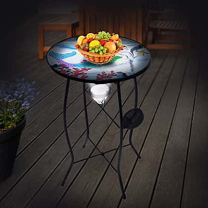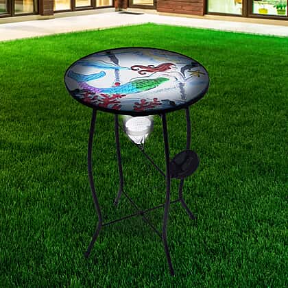 Hand Painted Mermaid Pattern Garden Table with Solar Light in Multi (Size 30.5x30.5x48cm)