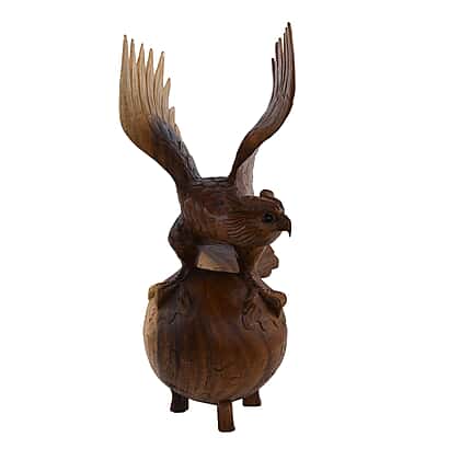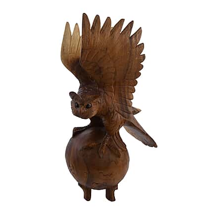 This handcrafted suar wood owl sculpture is a perfect item to gift to the ones who love animals and nature. This beautiful showpiece is crafted from suar wood or a South American WalAmerican for this quality wood. This sculpture is handcrafted with fine detailing of the owl from wings to his eyes and has a fine polish to make it appear natural. You can place this sculpture in your garden or indoors to elevate your home decor look.
