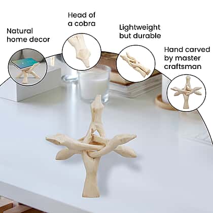 Make a show of your decorative egg, or find a safe and stylish place to keep your incense burner and moon globe with this handcrafted natural wood stand. The neutral wood finish makes it blend seamlessly into any setting, and makes it a functional addition to your home decor. The stand, which features cobra head design on the wooden sticks, is masterfully handcrafted by expert artisans.