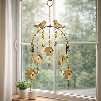 Handmade Hanging Bird House Iron Wind Chime (45 cm) - Golden