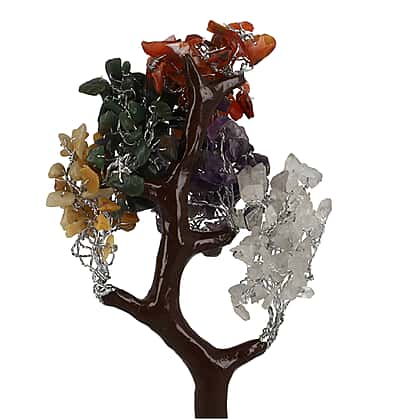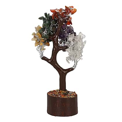 Handmade Multi Gemstone Bonsai Feng Shui Tree with Wooden Base (Size 23 Cm)