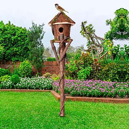 Handmade Wooden Bird House with Stand (Size 80x16x16 Cm) - Natural