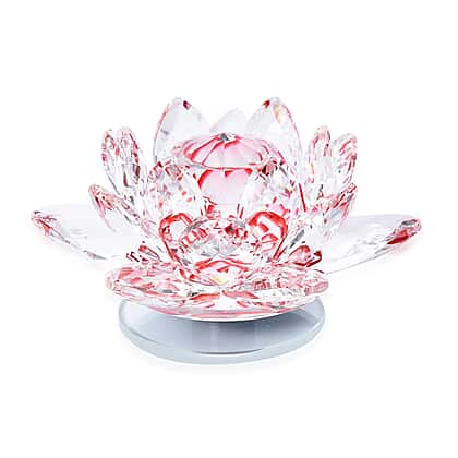 Home Decor Crystal Lotus Flower with Rotating Base in Red Colour Size 10x6 Cm