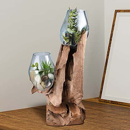 Jardin De Bali - 2 Vase on Teak Wood (Size-70x50x22Cm)