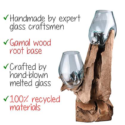- SUSTAINABLE AND RECYCLED MATERIAL: The piece is made with a sustainable teak wood base and recycled glass