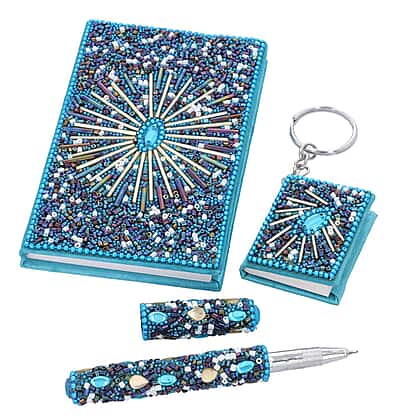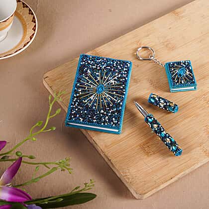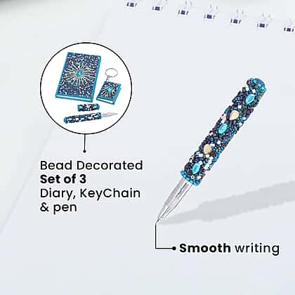 With the festive season around the corner, this set of three items makes a great gifting option. The set contains a diary, a keychain attached with a journal and a ballpoint pen. Each item is handcrafted and useful in day-to-day chores. The unisex design makes this set a versatile gifting option for both men and women. All three items are decorated with beads by artisans who craft fine jewellery.