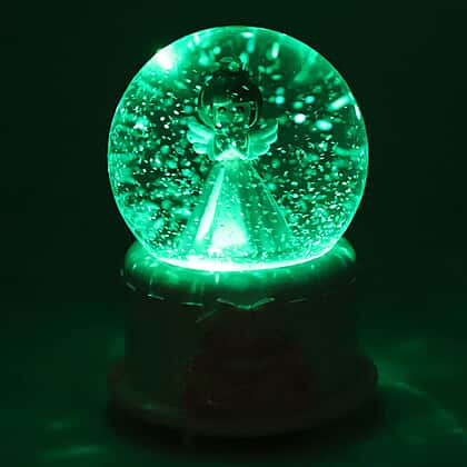 LED Colour Changing Musical Glass Water Global with Glitter - Angel with Heart (Requires 3xAAA Batteries - Not Inc) (Size 15)