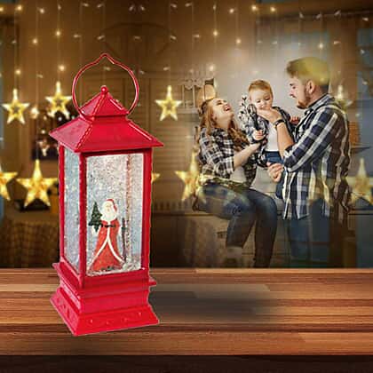 LED Water & Glitter Santa Lantern (Size 10.5x10.5x27.5cm) - Red (3xAA Battery not Included)