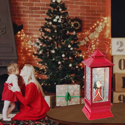 Red LED Water and Glitter Santa Lantern