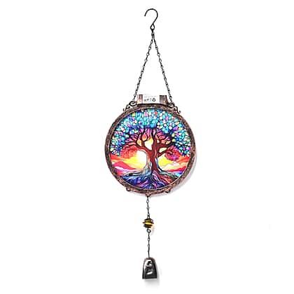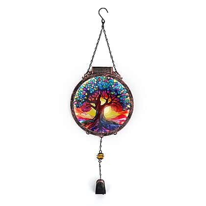 A vibrant expression of artistry defines this multicolour hanging decoration, centred around a detailed tree of life motif. The circular panel showcases a rich interplay of colours, creating a stained-glass-inspired effect that enhances light and depth. Intricate branches and finely segmented patterns add visual texture, while the luminous tones bring warmth and character to the design. Encased within a structured metal frame, it maintains a balanced and refined appearance. Suspended from a chain with a decorative drop element below, it introduces gentle movement, making it a distinctive piece for enhancing interior decor.