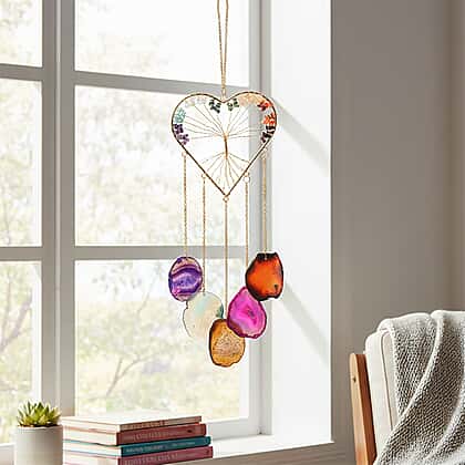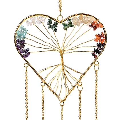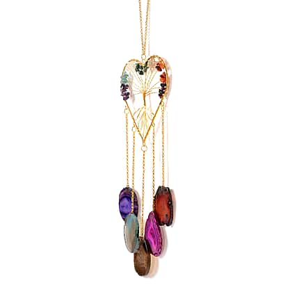 Livmore Gemstone Tree of Life - Agate Stone Heart Hanging (35 to 40cm) - Multi Colour