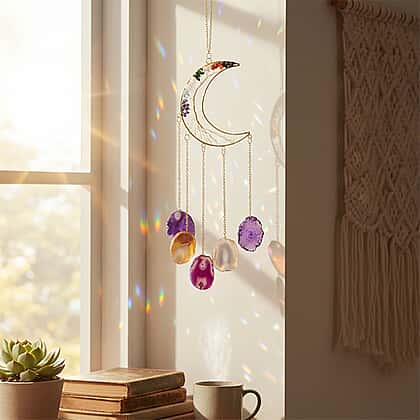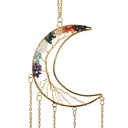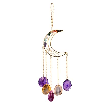 Livmore Gemstone Tree of Life - Agate Stone Moon Hanging (35 to 40cm) - Multi Colour