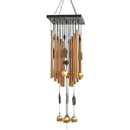 Enhance your space with the soothing sounds of the Hanging Wind Chime. Featuring a unique design with golden tubes, this chime produces a gentle, melodic sound when the wind passes through. Standing at 84 cm, it’s the perfect size for hanging in your garden, porch, or balcony, adding both beauty and tranquility to your surroundings. The chime is finished with decorative elements, including a charming Buddha figure at the bottom, offering a touch of spiritual charm to your outdoor or indoor décor.