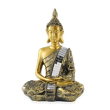 Meditating Buddha Statue (Size 13x8.5x20 Cm) - Gold and Silver