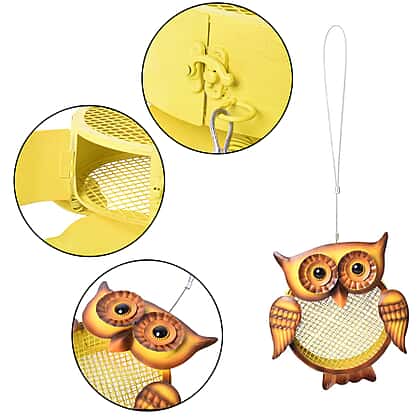 Metal Mesh Bird Feeder - Owl (Size 19x7.5x52Cm) - Yellow and Brown