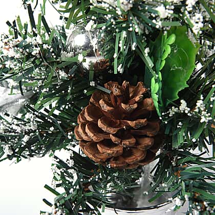 - LOVELY DÉCOR: The mini tree is decorated with tinsel, baubles, pine cone and a silver ribbon bowknot that dazzles and glitters with Christmas joy