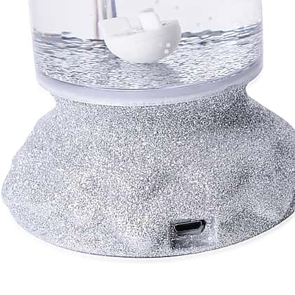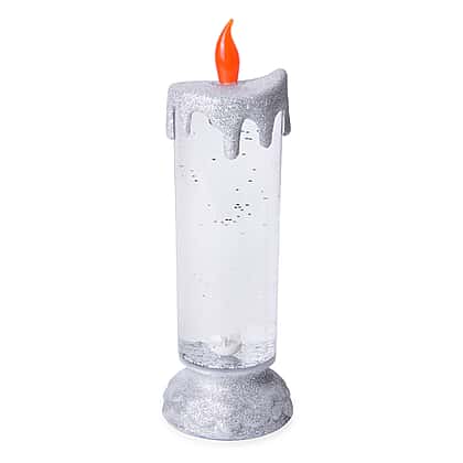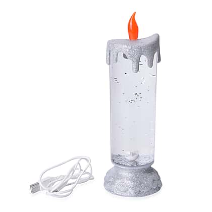 Moving Sprinkle Pattern LED Glitter Flameless Candle with USB and In built Agitator in Silver ColourSize 8.5x8.5x25.5 Cm