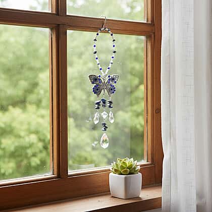 Multi Colour Butterfly Hanging Decoration in Silver Tone