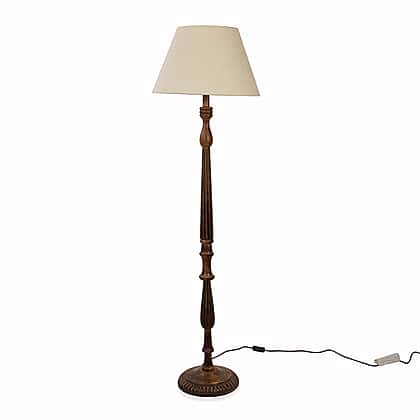 NAKKASHI - CE Certified Hand Carved Mango Wood Floor Lamp with Shade and 3 Pin UK Plug (Shade Size 25x45x28 Cm)