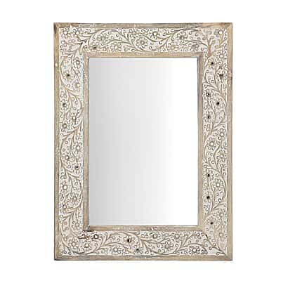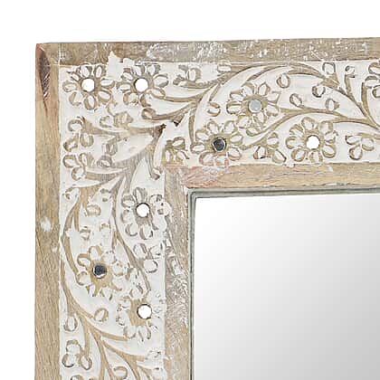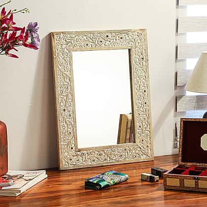 NAKKASHI - Handmade and Hand Carved Wooden Mirror (Size 61x46x2 Cm)
