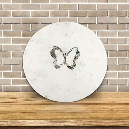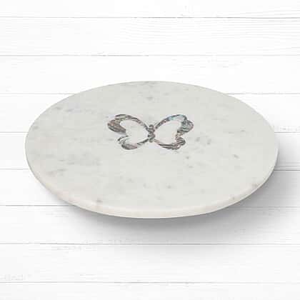 NAKKASHI - Round Marble Lazy Susan Tray with Abalone Inlay Butterfly Motif