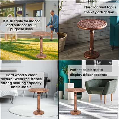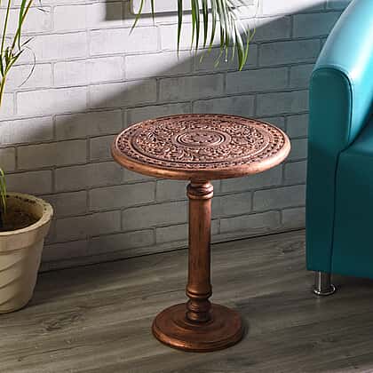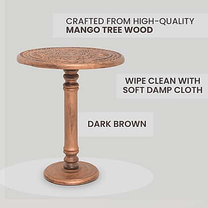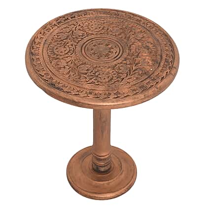 NAKKASHI Mango Wood Hand Carved Table (Knock Down) (Size 53x45 Cm)