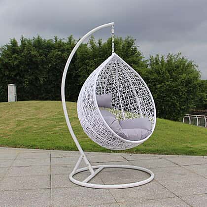 • CONTENTS: Outdoor swing chair in white with a hook and several fluffy cushions that provide utmost comfort